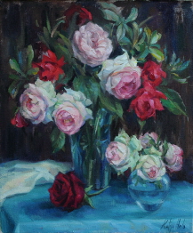 Still Life with Zinnias, Dahlias & Gerberas. 2017